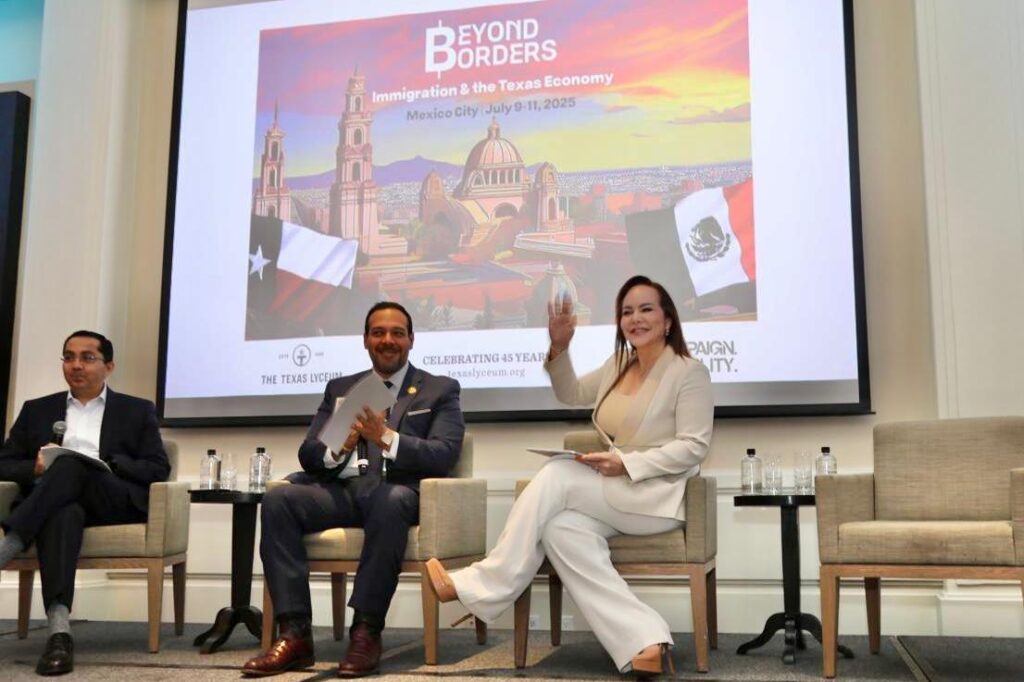Nuevo Laredo, Tam.– La alcaldesa Carmen Lilia Canturosas puso a Nuevo Laredo en el centro del mapa binacional al participar en el foro internacional “Más allá de las fronteras: Inmigración y la economía texana”.