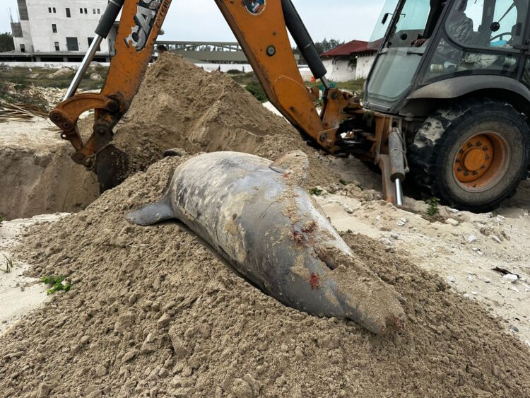 Tampico, Tamaulipas – Un delfín sin vida fue encontrado muy cerca de las escolleras, lo que llevó a la reportación a la Procuraduría Federal de Protección al Medio Ambiente (PROFEPA). El personal de la dependencia federal llegó al lugar con maquinaria para seguir el protocolo establecido, que implica rescatar el cuerpo del mamífero y enterrarlo cerca del mar.