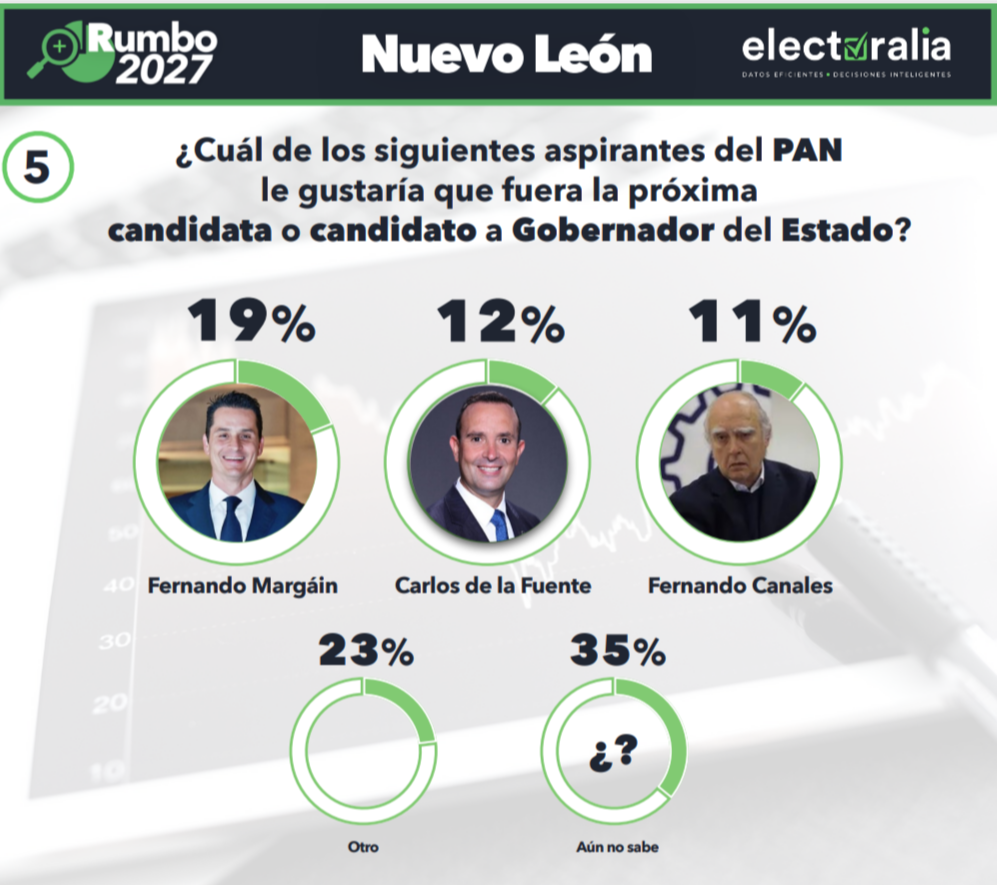 En el PAN a Fernando Margáin lo prefiere el 19%, a Carlos de de las Fuentes el 12% y a Fernando Canales el 11%