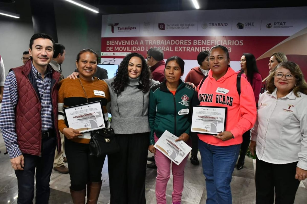 Cuarenta trabajadores originarios de Reynosa, Río Bravo, San Fernando y Matamoros, fueron recibidos por la secretaria del Trabajo y Previsión Social del Gobierno de Tamaulipas, al haber concluido su estancia laboral en la industria agroalimentaria de Estados Unidos y Canadá.